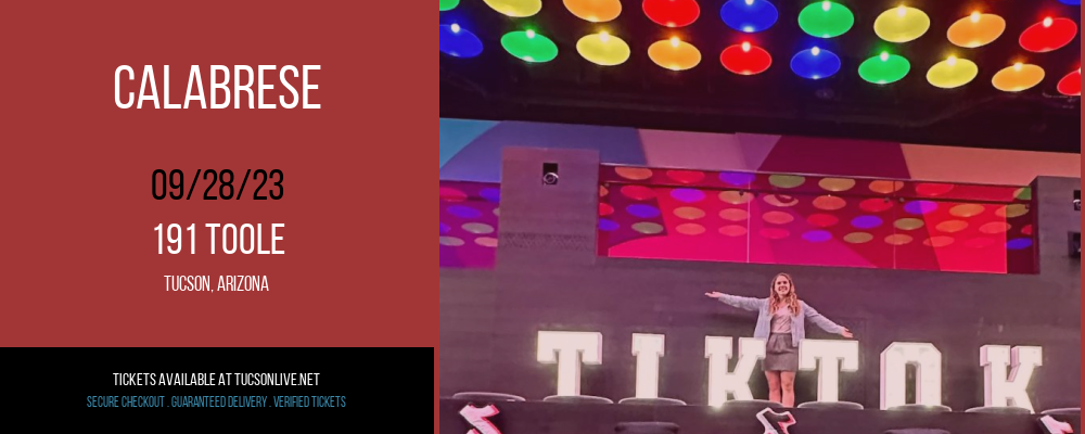If you want to experience the most unbelievable alternative music of 2023 that has been called “truly awesome” and “leading” by critics and fans alike, then clear your schedules and mark your calendars for Thursday 28th September 2023. That will be the day that the iconic 191 Toole proudly hosts Calabrese to their concert hall for a live event that will leave Tucson, Arizona blown away. Not only is Calabrese one of the best artists in the industry, but they also produce shows that are outstanding and rated 5-stars because of their passion, energy, and leading talent. It’s easy to see why Calabrese is the hottest music sensation that everyone is talking about and on Thursday 28th September 2023 you have the chance to see them live. All you have to do is click the Buy Tickets button below and order your tickets now while supplies last!