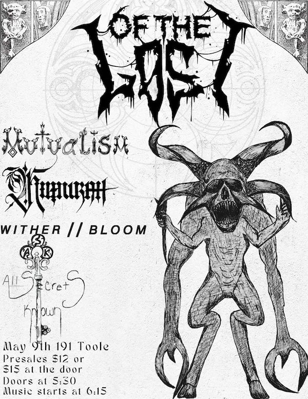 What do you have planned for Saturday 9th March 2024? Busy? Well, you better throw them out of the window and change up your calendar, but if you are free, don't stress. One of the best events of the spring in Tucson, Arizona, called Of The Lost is coming to 191 Toole. Tickets are fast selling out, but more about that later. There will be everything you could possibly expect there, and you don't want to lose out on something this excellent. As a result of the organizers' excellent workmanship, you can anticipate some rather awesome visuals and music. You genuinely don't need to worry about a thing because it has been cared for already. Most likely the best part of this event will be rubbing shoulders with like-minded people just like you and everyone knows that you guys really know how to get down and party. Now back to the tickets. Nothing will be more frustrating than your absence from Of The Lost, so be sure to obtain your tickets from our site before someone else beats you to it and enjoys all the festivities at 191 Toole. So, honestly what are you waiting for? Do it right now!
